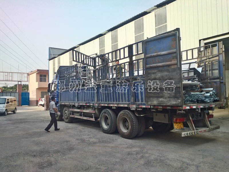 六一已经过去,这几天我省的气温也明显的升高,在这个艳阳高照的天气,我们益童工作人员顶着室外高温,按时按质按量的完成了新郑龙湖客户订购的体能乐园装车的工作,我们工人师傅也会在当天跟随货车一并到达安装场地,进行后期的组装以及安装工作,下面就是装车发货的实拍图。