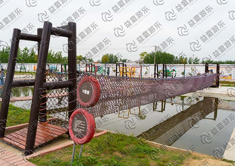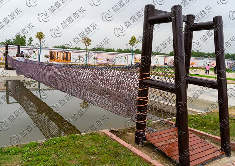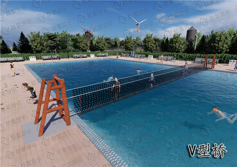 V型桥是我们水上拓展项目中的一个经典项目,主要呈V字型。中间有一条有钢丝,儿童可以踩着钢丝行走,家长们也不用担心儿童会摔倒的,两边有绳网围着,能不能走完这个项目也是在试探着孩子们的胆量,使得孩子们无论做什么事情都不轻言失败,敢于尝试。