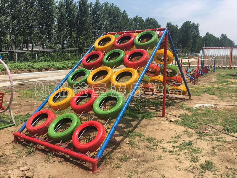 儿童体能乐园项目中比较流行的还有轮胎坡,该游乐设备是由轮胎与绳网组成的,五颜六色的轮胎整齐的排列给予儿童们很好的视觉冲击,非常的漂亮。孩子们玩的时候需要从一面通过攀爬轮胎,翻越高点,由另一面踩着轮胎攀下地面。该游戏项目可以很好的锻炼儿童的手眼协调能力,增强儿童的身体素质,进而提高身体的平衡能力。